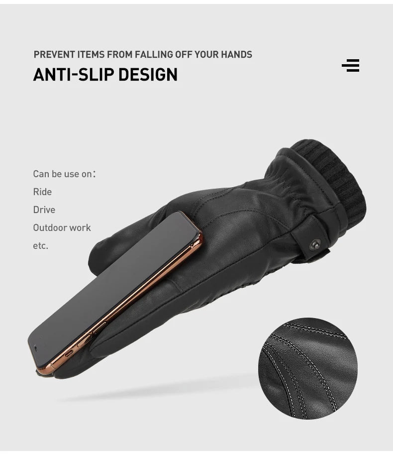 BISON DENIM Men Sheepskin Gloves Winter Thermal Touchscreen Full-finger Mittens Ultralight Windproof Gloves For Driving Riding
