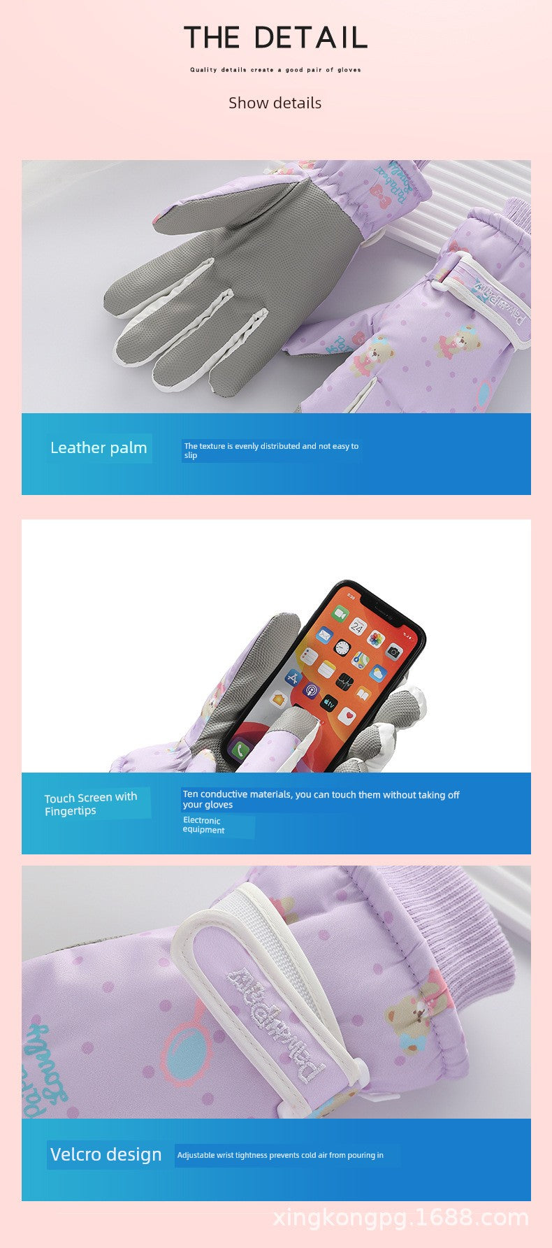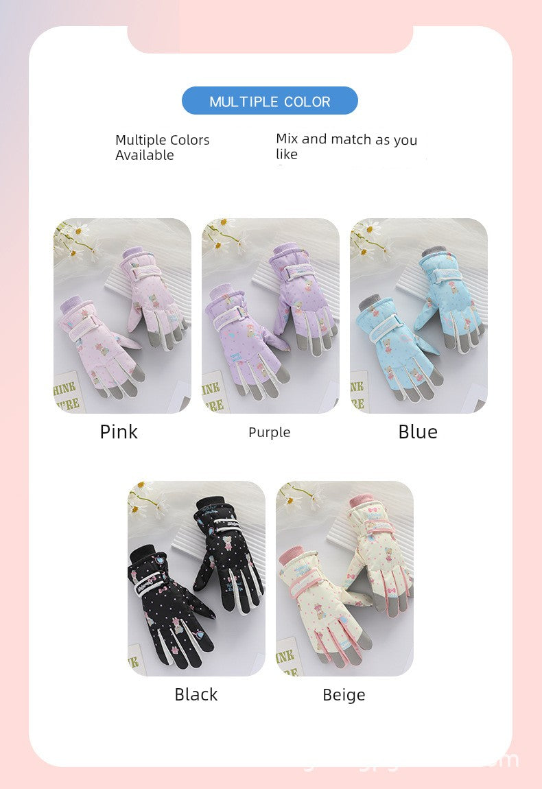 German Craftsmanship Ski Gloves for Women, Winter Fleece-Lined, Outdoor Cycling and Mountaineering Sports, Thickened, Waterproof, Windproof and Cold-Proof