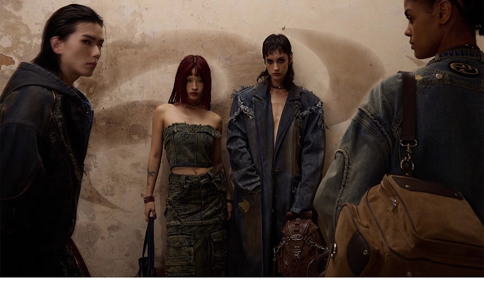 Process: Washed,Distressed,Pleated,Hole,Edging,Fold