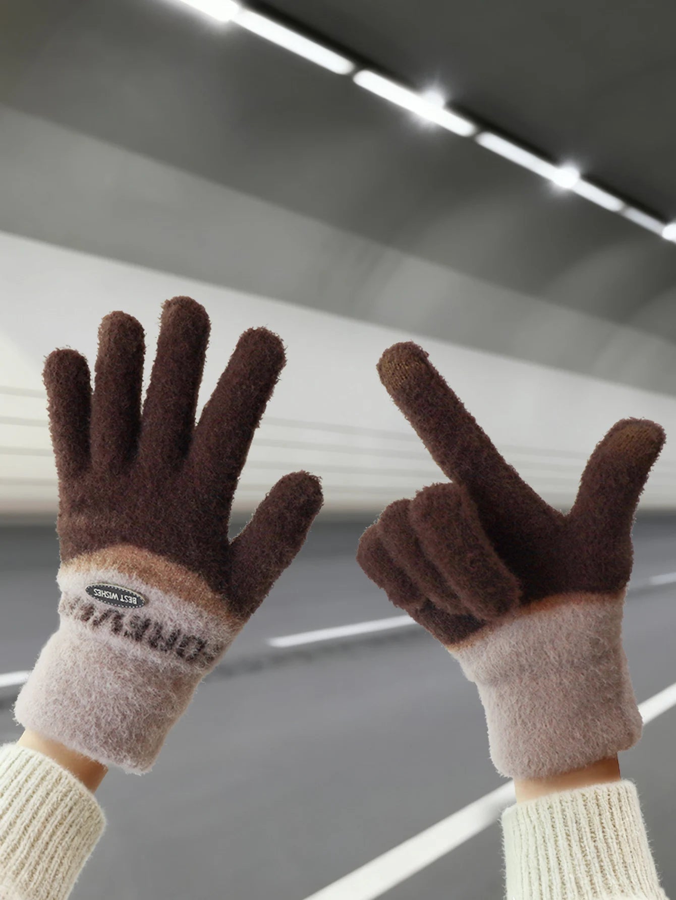 Touchscreen Cotton Gloves for Men, Winter Warm Fleece-Lined Thick Knitted Gloves for Cycling, Unisex Cold-Proof Gloves